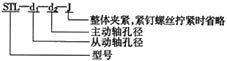 例:STL3型,主動(dòng)軸孔6mm,從動(dòng)軸孔8mm,整體夾緊式 型號(hào)表示:STL3—6—8—J d1、d2可按客戶要求加工